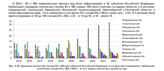 Но даже по этим данным можно судить о том, что суммарное количество случаев экстремально высокого и (просто) высокого загрязнения поверхностных вод увеличилось в 2024 году более чем на 10%. И эти цифры в абсолютном выражении по-прежнему огромны: